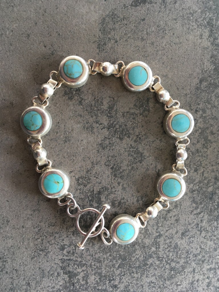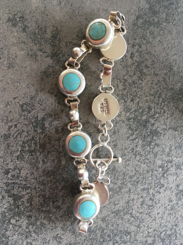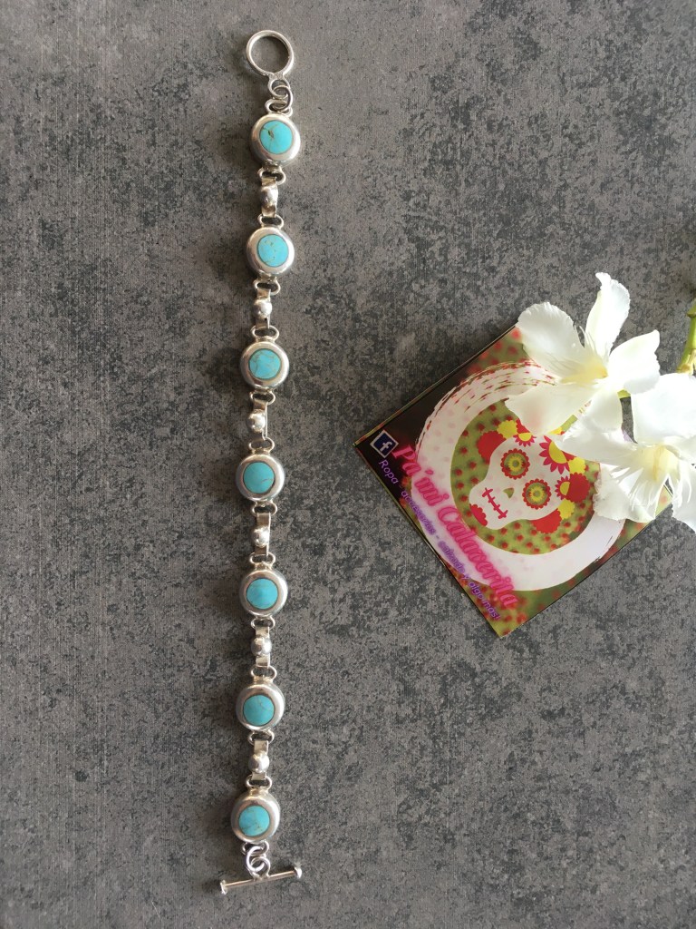 Bella pulsera de plata y turquesa hecha en México .925, en excelente estado. https://tinyurl.com/29axvhkr