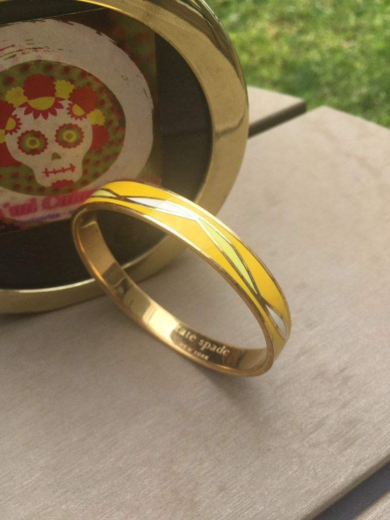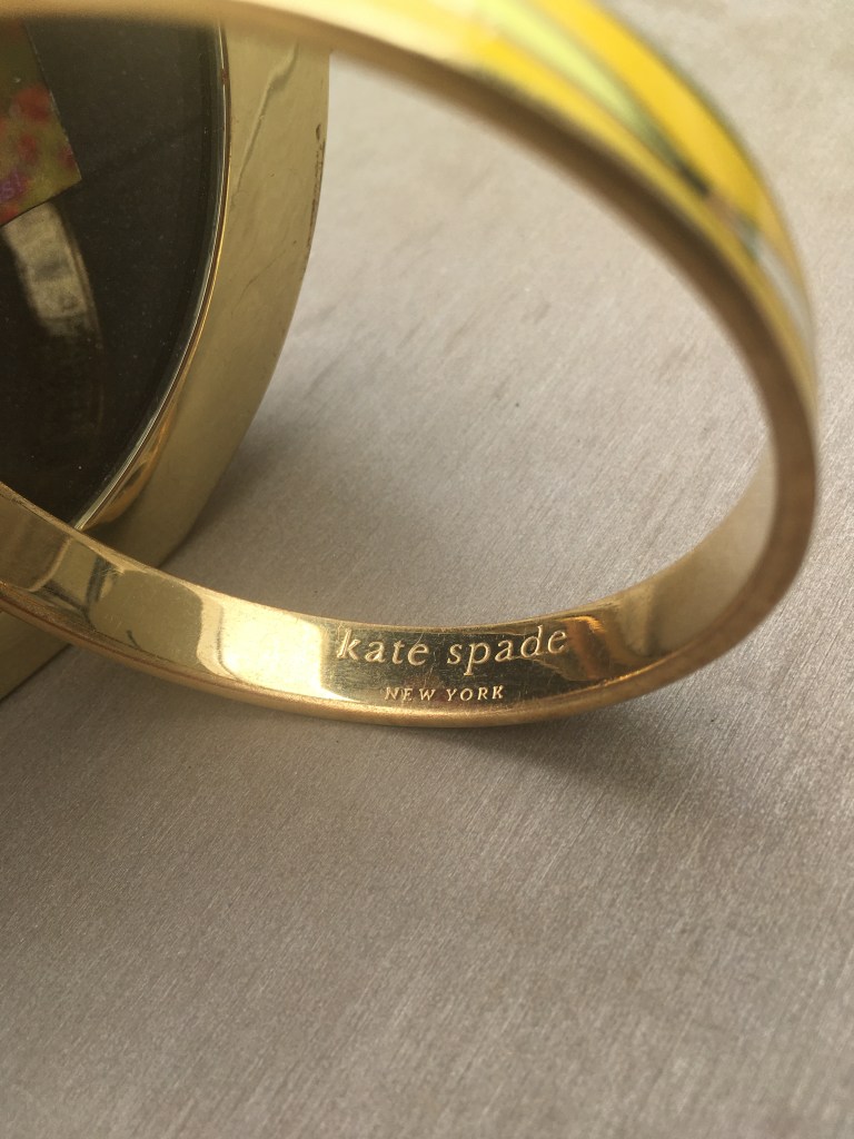 Firmado Kate Spade hermoso brazalete esmaltado color amarillo y tono oro, en excelentes condiciones, ideal para regalar. https://tinyurl.com/288vqcot