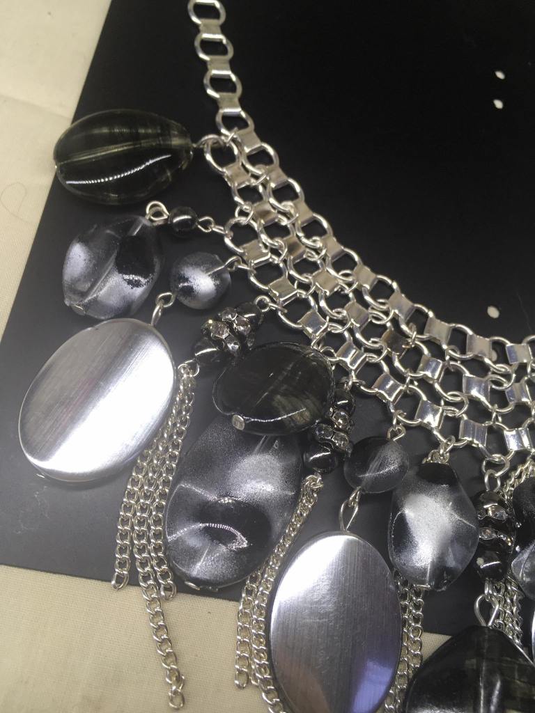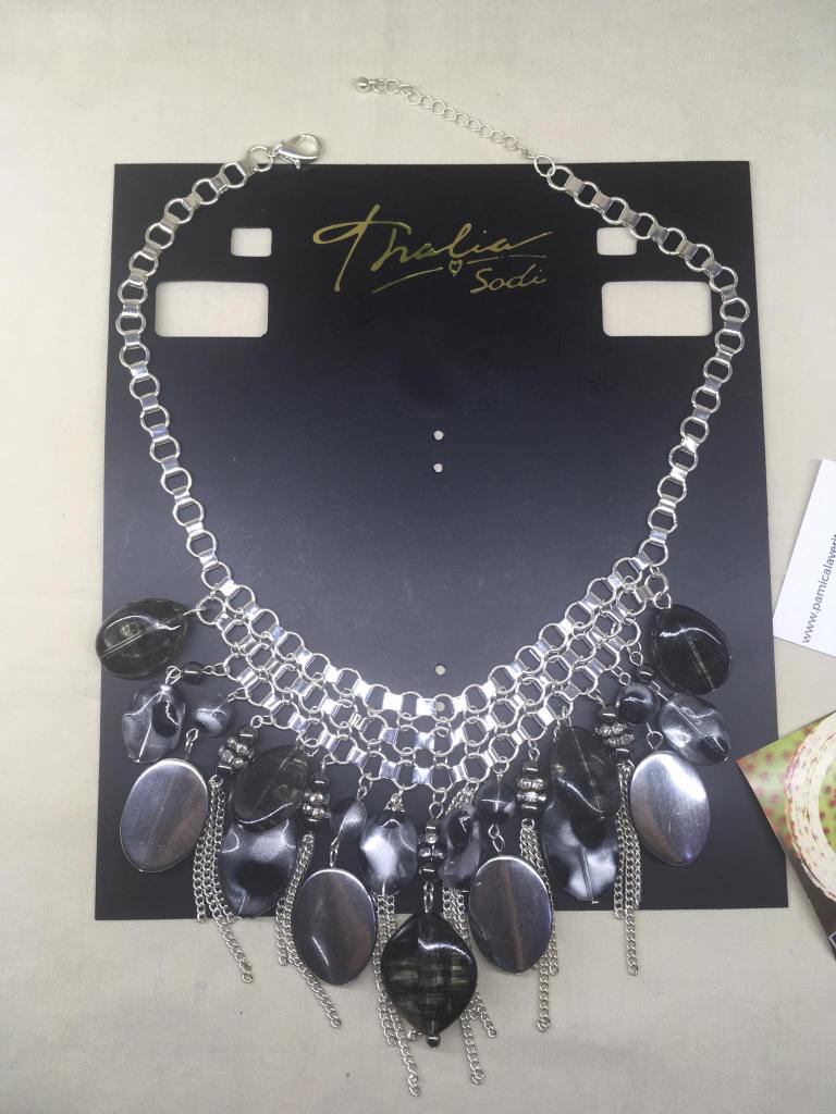 Hermoso collar de acero y flecos de cadena y cuentas color humo y plata de la marca Thalia Sodi, nuevo con etiqueta, mide 44 cm mas 5 cm de extensión, luce muy hermoso!https://tinyurl.com/2cxpsxjm