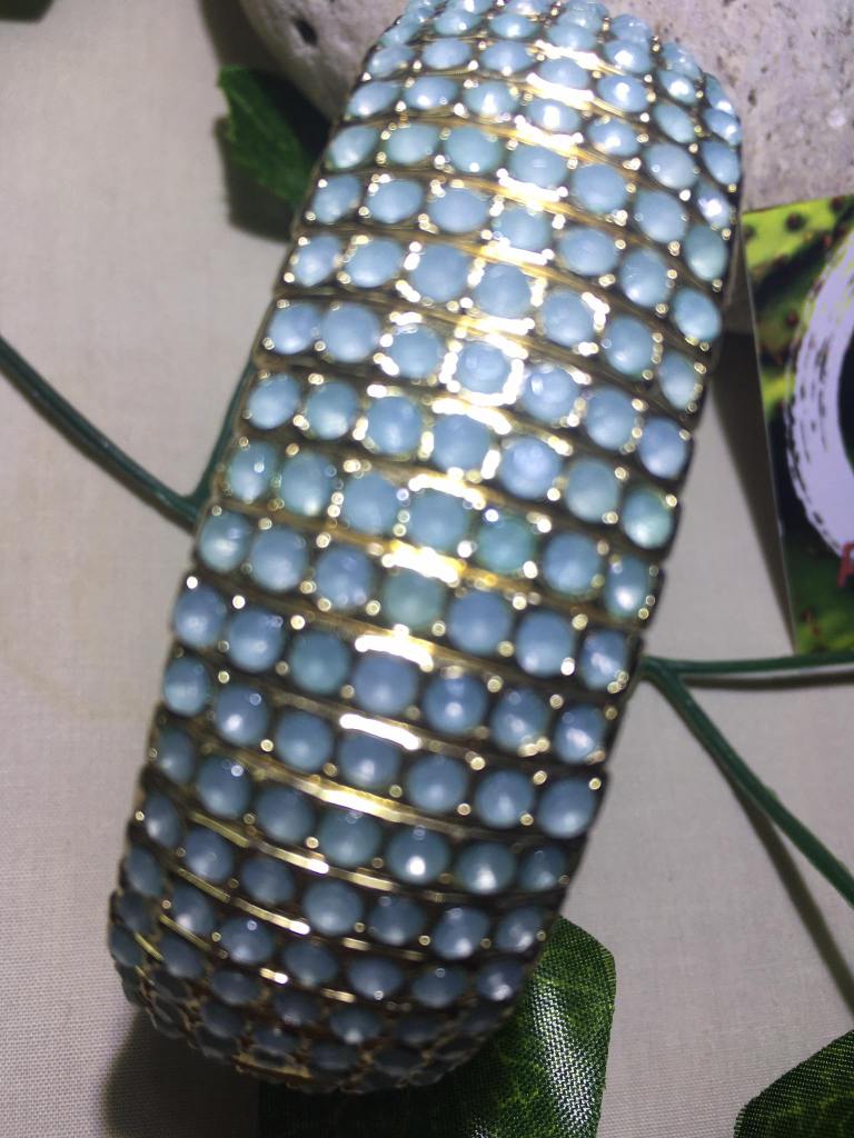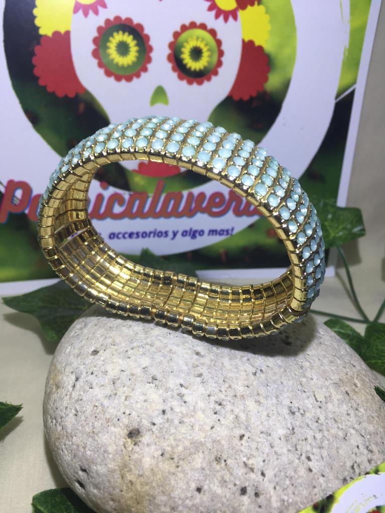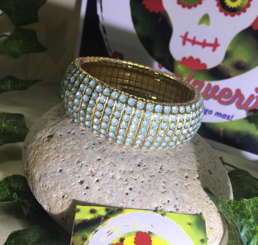 Nuevo sin etiqueta, Bellísimo Brazalete Amrita Singh, Kenmare (esposa) Ancha elástica con cristales turquesa, interior con baño de oro.
