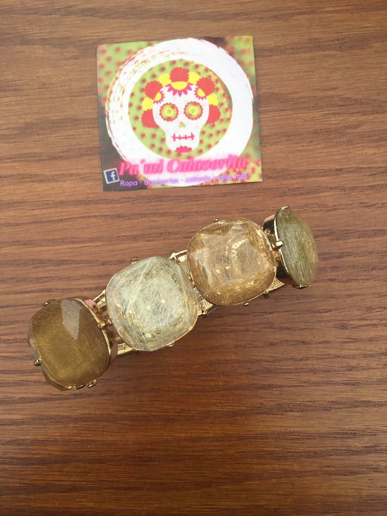 Pulsera linda y elegante con cuentas de imitación cristal en base metálica ajustable. Color verde seco muy versátil. En excelente estado. Ideal para regalar o usar todos los días.https://tinyurl.com/26nqxhzl