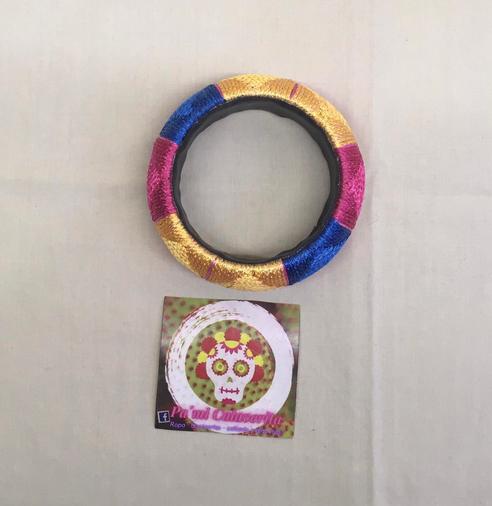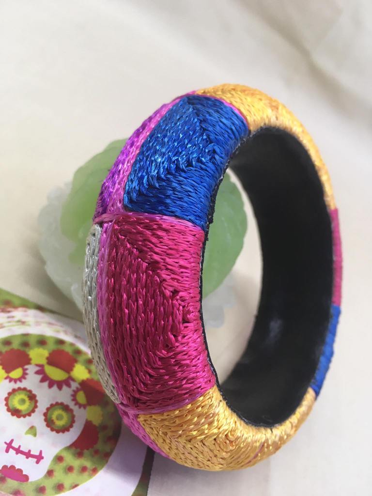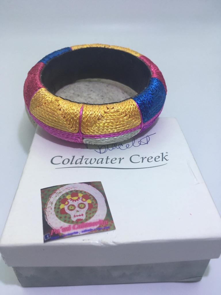 Hermoso Brazalete multicolor hecho a mano con hilo de seda, 100% artesanal, muy llamativo y combinable, mide 7 cm de diámetro mas excedente y 2.5 cm de ancho, nuevo sin uso, de la marca Coldwater Creek, Americana. https://tinyurl.com/268aevnj